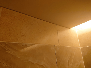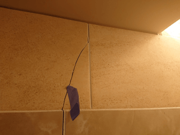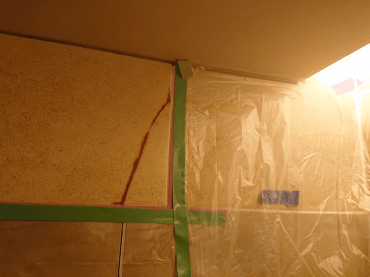 天井付近のタイルでしっかり亀裂が入り割れています。